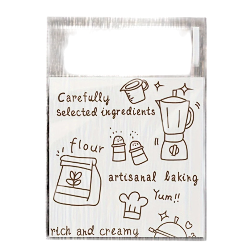100 ks Samouzavíracie plastové sáčky 7 x 10 cm Priehľadné obaly na sušienky cukríky a maškrtky Biele sáčky s motívmi varenia a pečenia Vianočné Halloween párty balenie