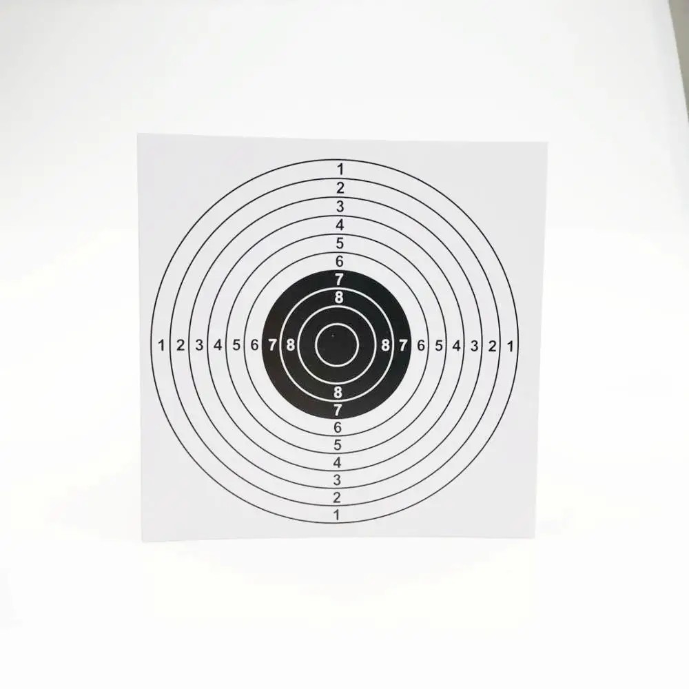 Rozmer 14 x 14 cm je ideálny pre domáce aj vonkajšie strelnice. Biele plátno s čiernym stredom poskytuje vysoký kontrast. Prehľadné bodovanie 1–8 umožňuje rýchle hodnotenie výsledkov. Terče sú vyrobené z kvalitného papiera.