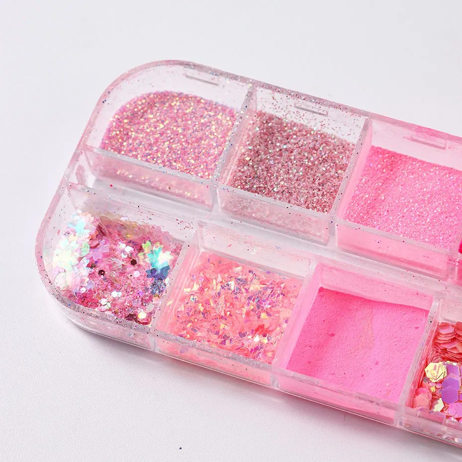 12 druhov trblietavého prášku na nechty zmiešané farby pre kreatívnu manikúru a nail art Táto