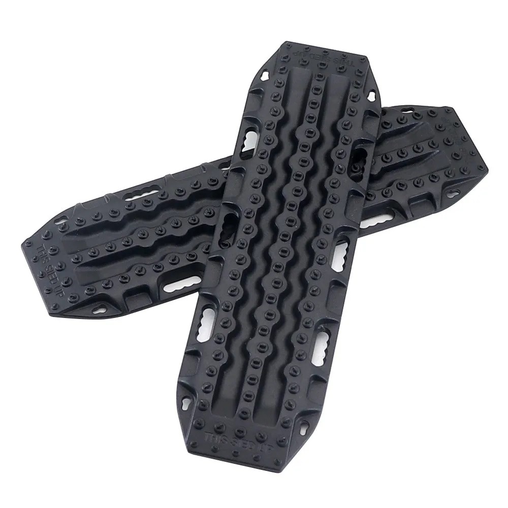 Trakčné dosky pre RC modely sú praktickým doplnkom pre jazdu v teréne aj pre vizuálnu úpravu karosérie. Vďaka kompaktným rozmerom 133 × 39 mm sa ľahko zmestia na strechu modelu, na boky karosérie alebo do vybavenia maketových expedičných doplnkov. Tvar dosiek je inšpirovaný reálnymi vyprošťovacími podložkami používanými pri terénnych vozidlách. Povrch tvorí plastové výstupky, ktoré pomáhajú kolesám získať priľnavosť, ak sa model dostane do piesku, štrku alebo mäkkej hlíny.
