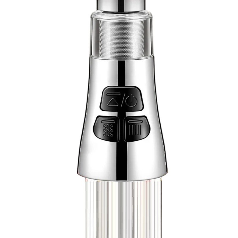 360° univerzálny predlžovač kuchynskej batérie s filtrom, perlátorom a rozstrekovým bubblerom 145×50 mm strieborná farba