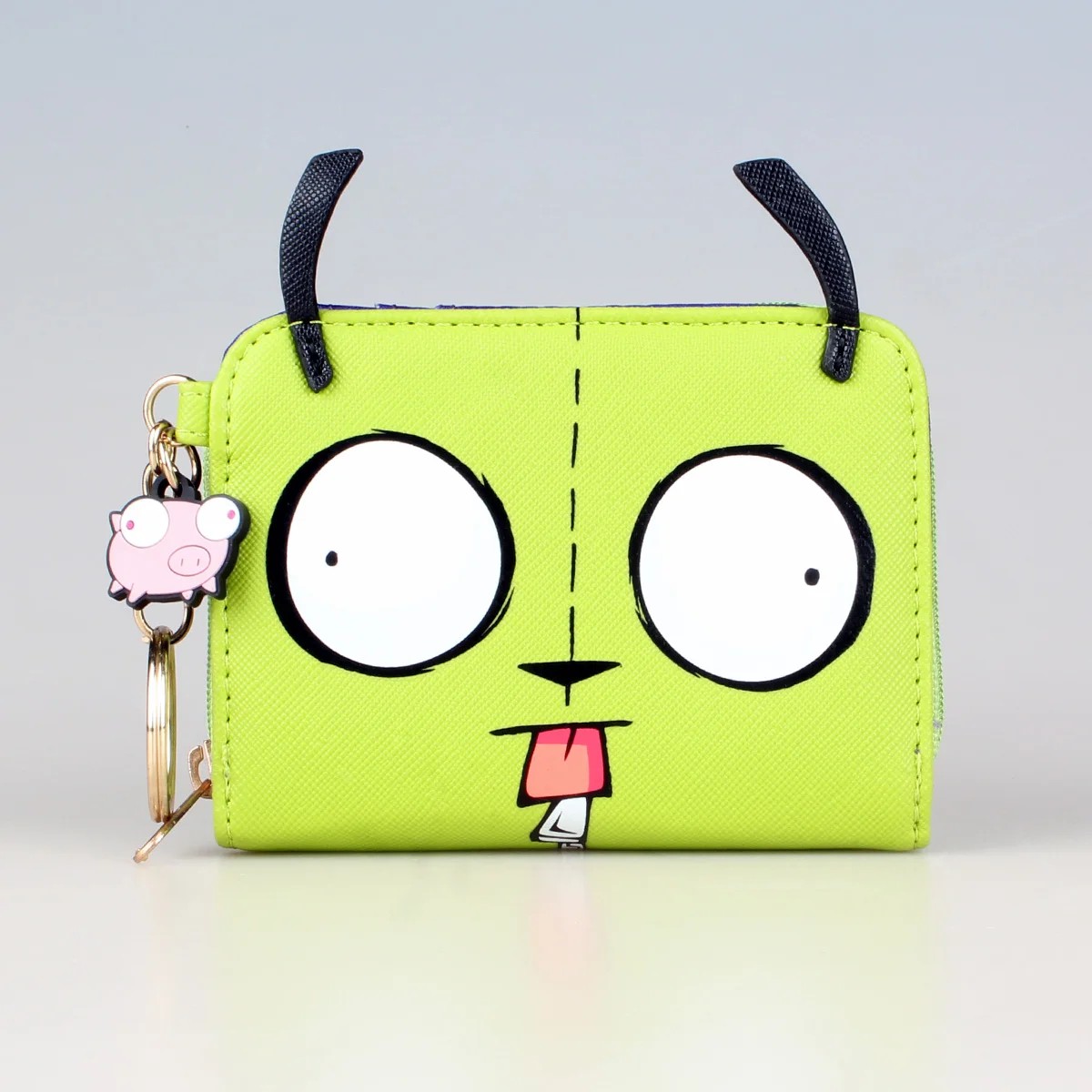 3D peňaženka 8 x 2,5 x 11 cm Svetlozelené prevedenie Motiv tváre Prívesok na zips Kompaktná peňaženka