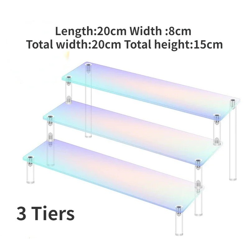 Trojúrovňový akrylový stojan je navrhnutý pre efektívne usporiadanie a vystavenie drobných predmetov v domácnosti. Vďaka trom samostatným policiam poskytuje dostatok priestoru pre rozdelenie jednotlivých vecí podľa potreby. Využijete ho pre figúrky, parfémy, šperky alebo iné zberateľské predmety.