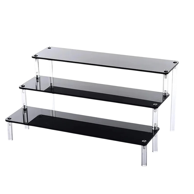 Akrylový stojan 3 úrovne 40 × 21 × 15 × 8 cm čierny organizér na figúrky parfémy šperky police pre vystavenie zberateľských predmetov