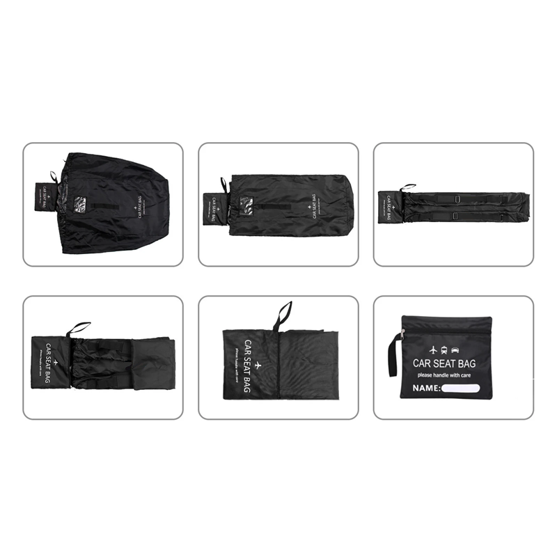 Čierna polyesterová cestovná taška na autosedačku 85 x 45 x 45 cm Skládací ochranný obal s popruhmi Praktické puzdro 25 x 25 x 4,5 cm