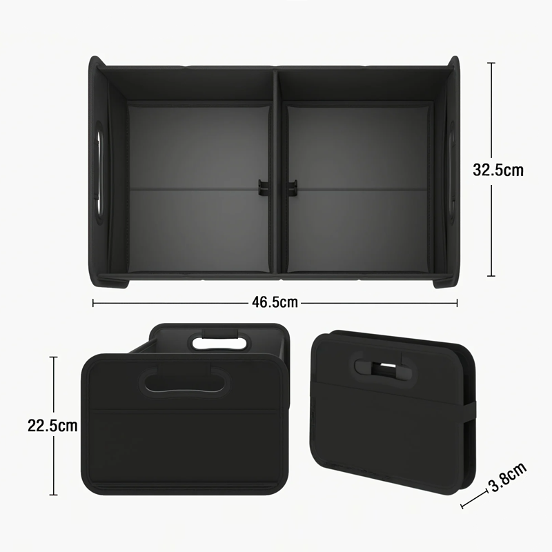Čierna sklápacia vodoodolná úložná krabica do kufra auta 46,5x32,5x22,5 cm Organizér so dvoma priehradkami na batožinu