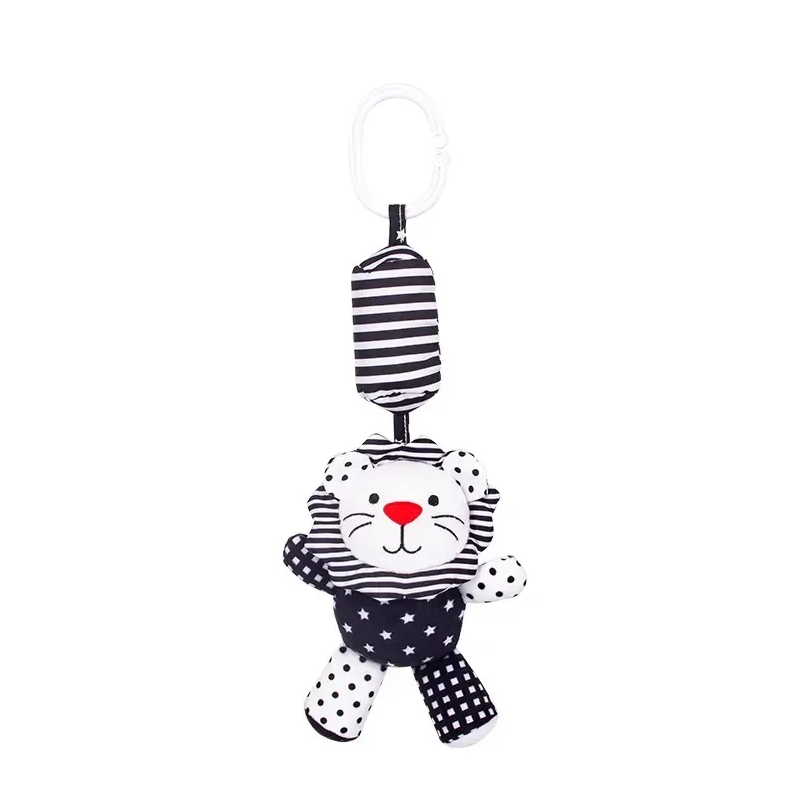 Toto čierno-biele hrkálka do kočíka v tvare leva je dokonalým spoločníkom pre vaše bábätko počas prechádzok aj doma. Kombinuje vizuálny kontrast, príjemný materiál a jemné zvuky, ktoré podporujú rozvoj zmyslov a motoriky už od prvých mesiacov života. Vďaka zavesnému systému ho ľahko pripevníte ku kočíku, postieľke či autosedačke. Hrkálka je bezpečná, ľahká a svojím roztomilým dizajnom si rýchlo získava pozornosť bábätka.