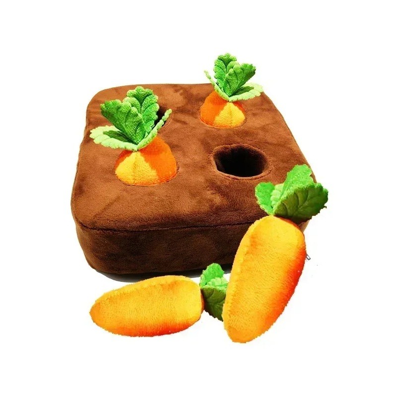 Čuchacia podložka pre psov s vytahovacími mrkvami je navrhnutá ako praktická pomôcka pre čuchovú prácu a pokojný mentálny pohyb. Podložka využíva jednoduchý, ale účinný princíp, kedy sú jednotlivé časti zakryté vytahovacími prvkami. Súčasťou sú 4 kusy vytahovacích mrkiev, ktoré zakrývajú priestor v podložke a vytvárajú prirodzené prekážky. Pes musí mrkvy aktívne vytiahnuť a odkrývať jednotlivé časti, čo podporuje sústredenie a prirodzené inštinkty pri hľadaní potravy. Hračku je možné používať doma a je vhodná na pokojný spôsob zábavy.