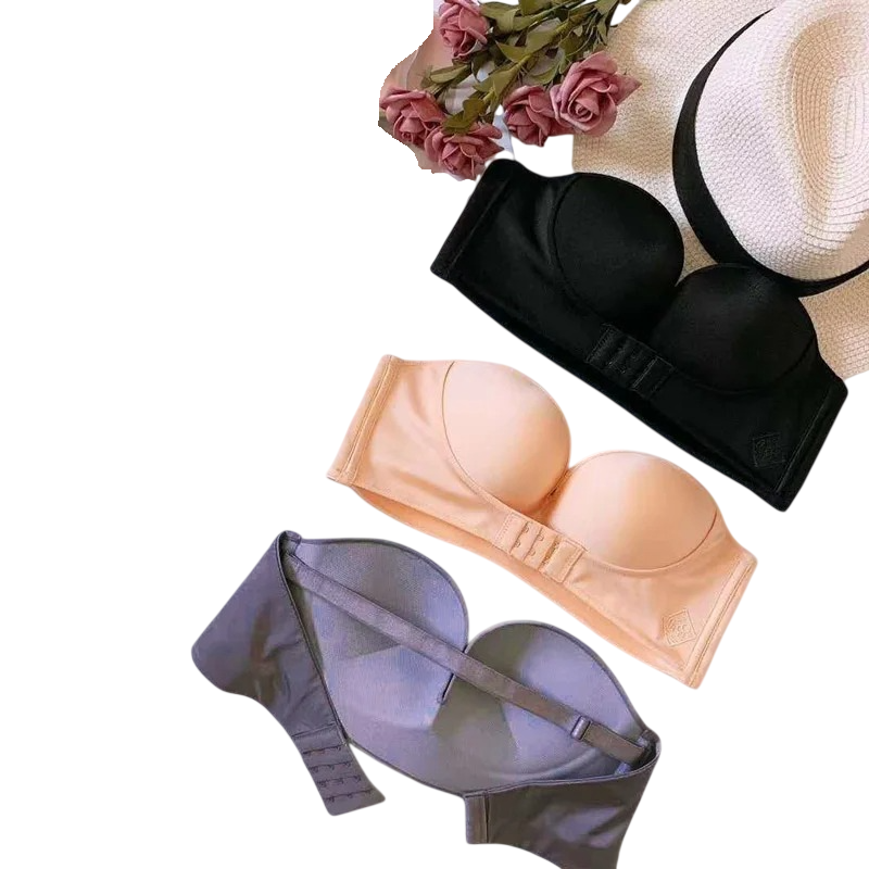 Dámska bezešvá podprsenka bez ramienok s predným zapínaním polyester elastan nylon pre každodenné nosenie aj spoločenské šaty