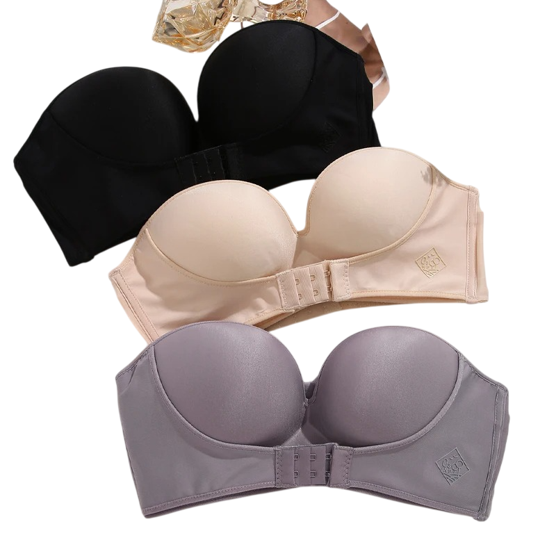 Podprsenka je vyrobená z nylonu, ktorý zabezpečuje ľahkosť a odolnosť materiálu. Prevedenie bez ramienok umožňuje využitie pod oblečením s odhalenými ramenami. Hladké košíčky pomáhajú vytvoriť čistý vzhľad bez viditeľných prechodov. Vďaka zapínaniu vzadu sa podprsenka ľahko oblieka a prispôsobuje. Bezešvé prevedenie prispieva k nenápadnému vzhľadu pod oblečením.