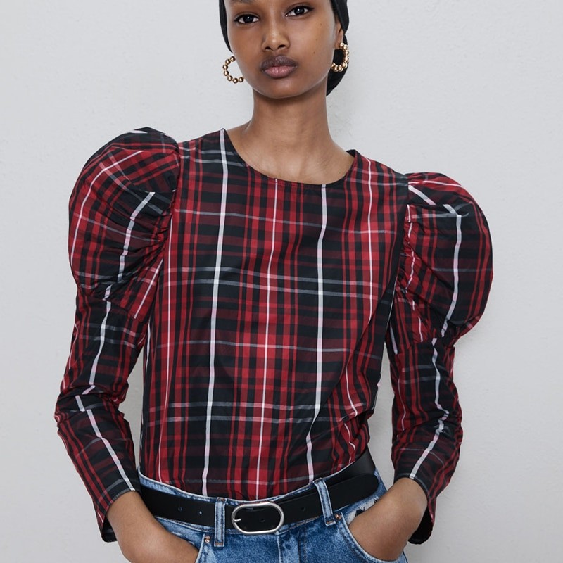 Kvalitný blúza s kockovaným vzorom.
