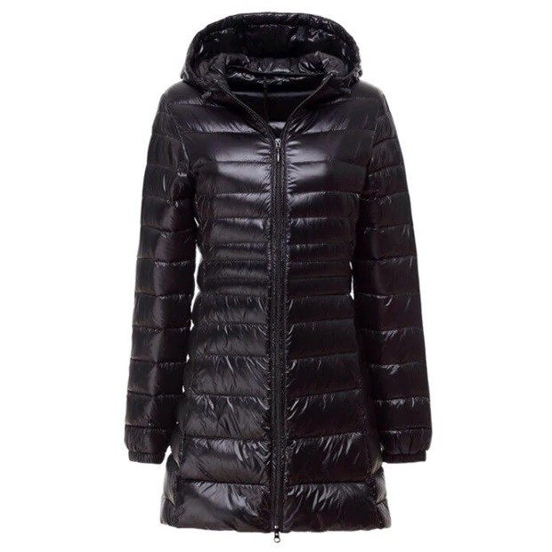 V tejto dlhej bunde s kačacím perím Vám bude zaručene teplo.