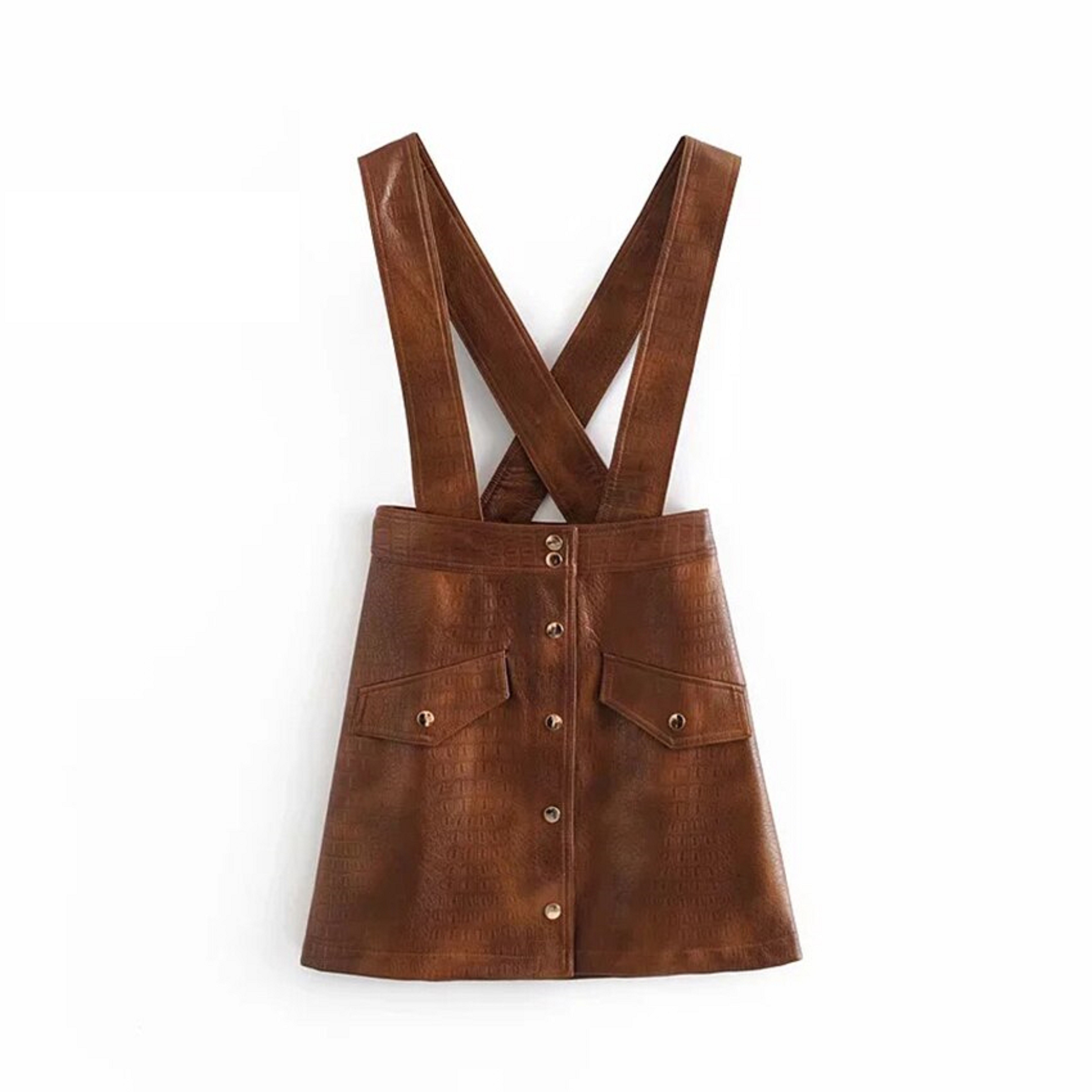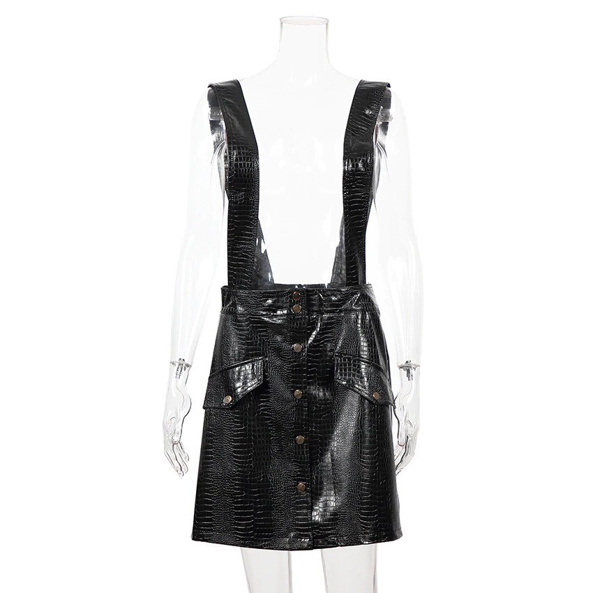 Dámska kožená mini sukňa s ramienkami