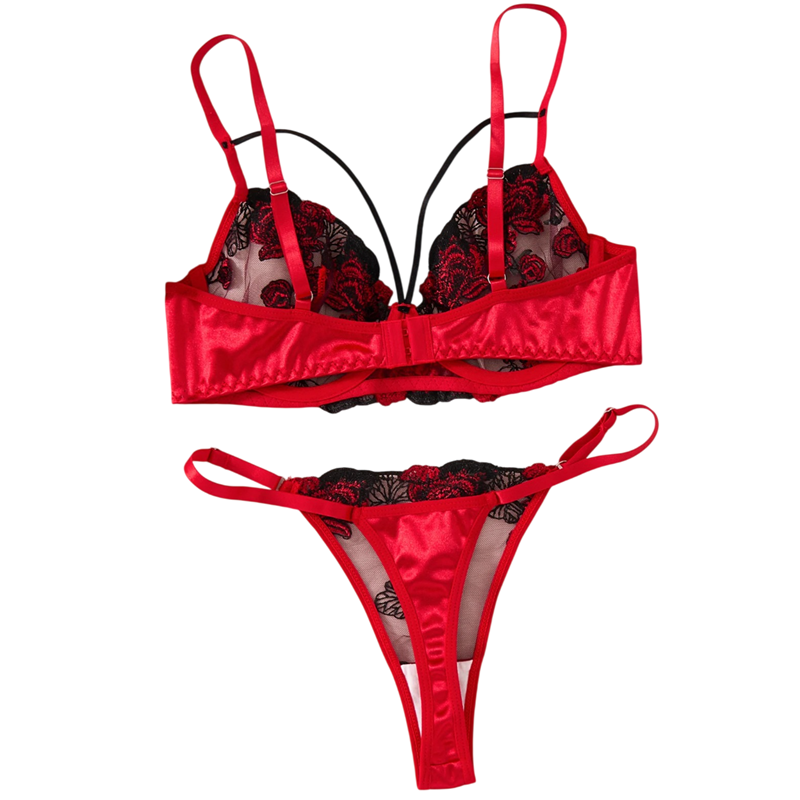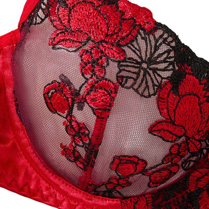 Červená krajková súprava s kvetinovou výšivkou a ľahkým materiálom vhodná na pohodlné každodenné nosenie aj ako spodné prádlo. Celý popis