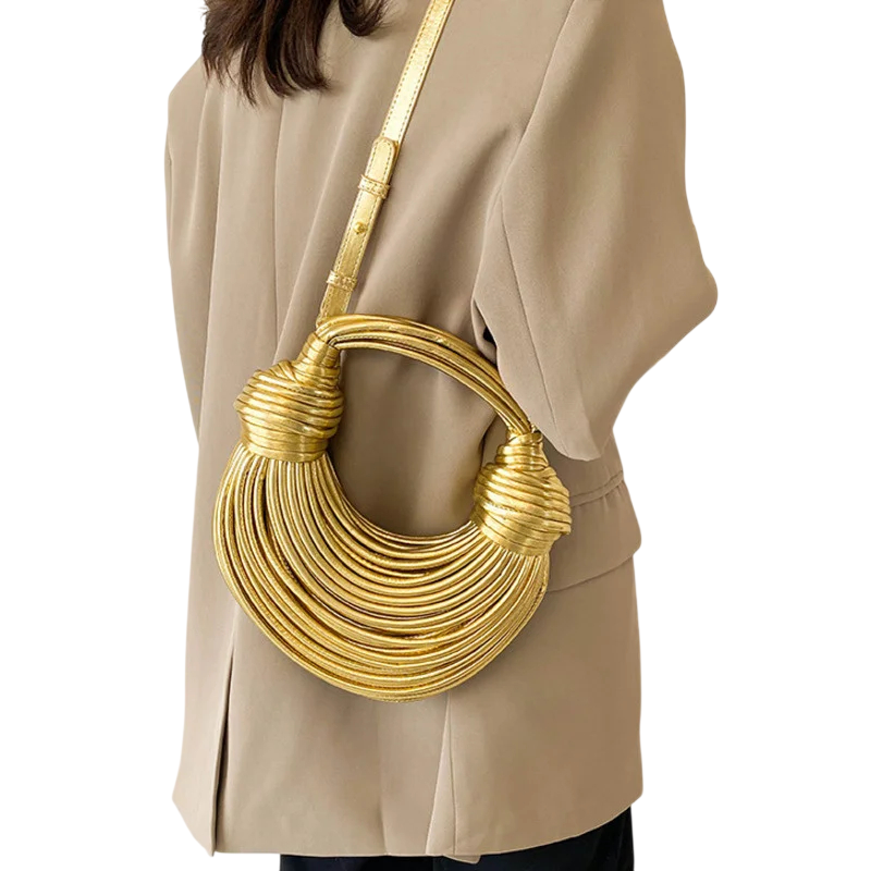 Táto dámska luxusná nudlová kabelka je výrazným módnym doplnkom, ktorý spája moderný dizajn s elegantným prevedením. Vďaka rozmerom 25 × 10 × 27 cm ponúka dostatok priestoru pre každodenné nevyhnutnosti a zároveň si zachováva štýlovú siluetu. Charakteristickým prvkom je lanové vázanie, ktoré dodáva kabelke originálny vzhľad a luxusný dojem. Kombinácia umelej kože a polyesteru pôsobí elegantne a ľahko sa začlení do mestského aj voľnočasového outfitu. Kabelka je navrhnutá tak, aby bola praktická, ale zároveň vizuálne výrazná.