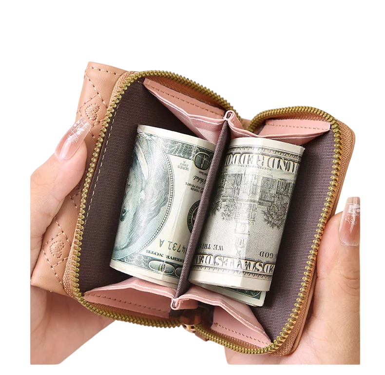Táto dámska malá peňaženka zaujme na prvý pohľad jemným vyšívaným motívom srdiečok a kompaktným prevedením, ktoré je ideálne pre každodenné použitie. Vďaka svojim rozmerom sa ľahko zmestí do kabelky, batohu aj menšej crossbody tašky. Zapínanie na zips zabezpečuje bezpečné uzavretie obsahu a prehľadné uloženie drobností. Praktické pútko na ruku umožňuje pohodlné nosenie aj samostatne bez nutnosti kabelky. Materiálová kombinácia PVC a polyesteru pôsobí moderne a zároveň zachováva tvar peňaženky.
