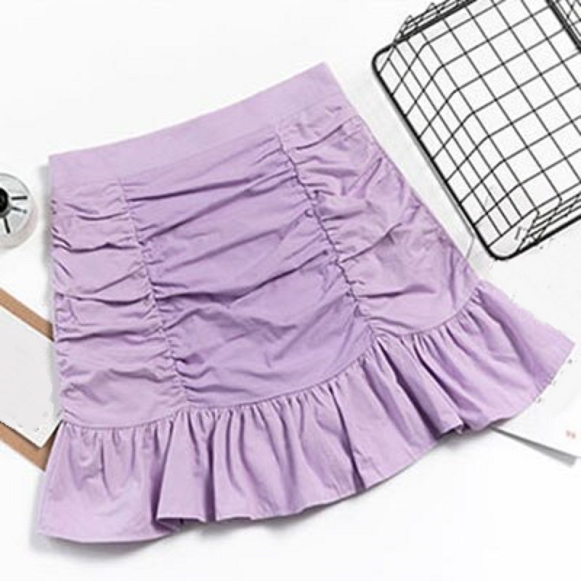 Dámska mini sukňa s riasením a volánom