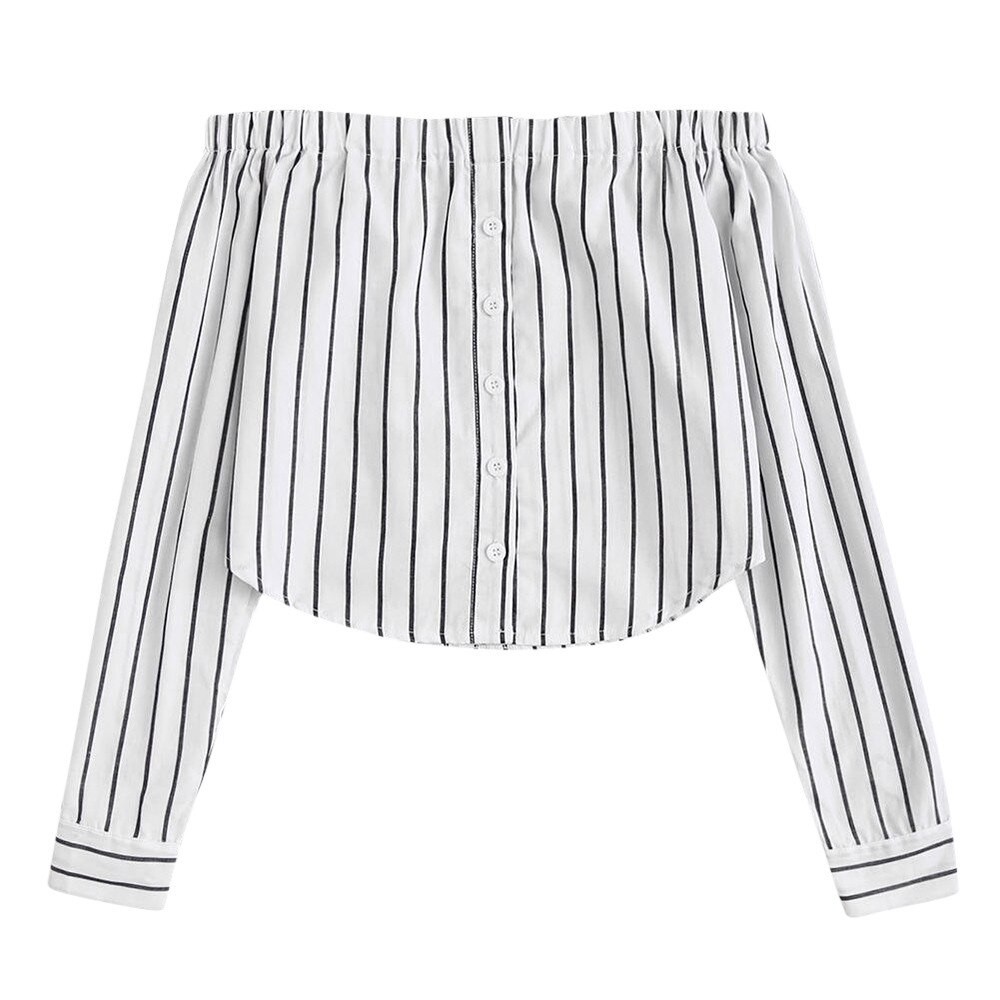Dámska pruhovaná košeľa s odhalenými ramenami