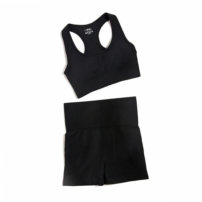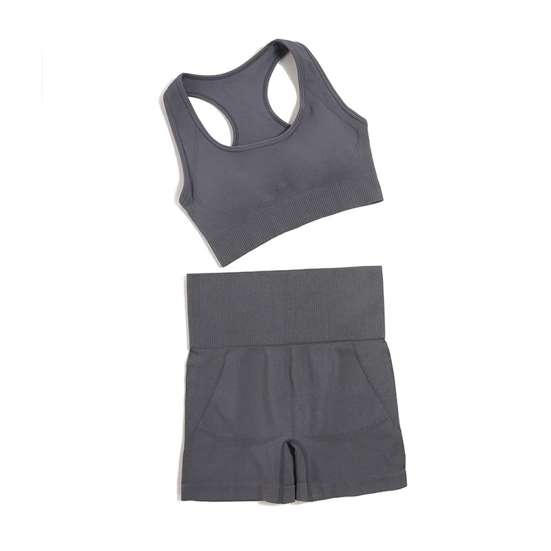 Dámska športová súprava Kraťasy a športová podprsenka Jednofarebná letná fitness súprava z nylonu