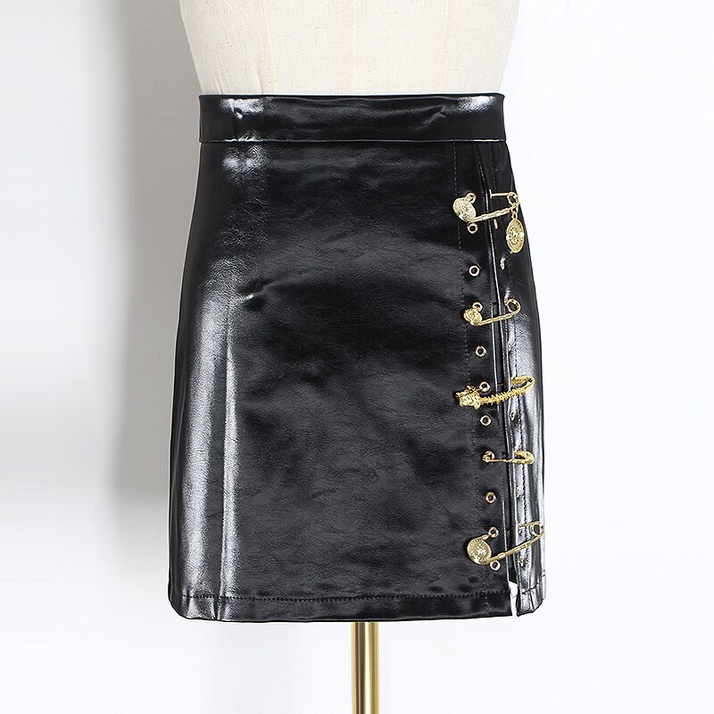 Dámska sukňa z umelej kože sa sponami