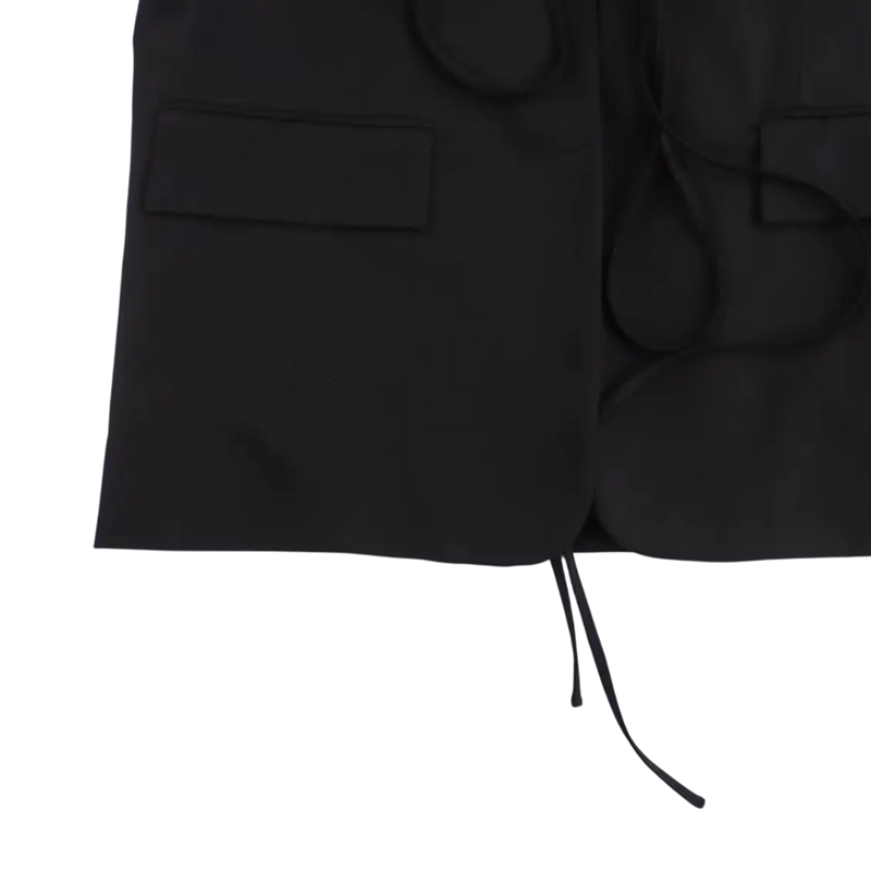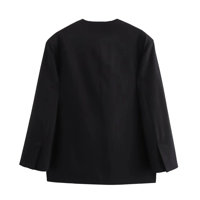 Úvodná strana Úvodná strana Oblečenie a doplnky Dámske Dámske saká Dámske čierne elegantné sako s výstrihom do V a šnúrkou na zaväzovanie Jednofarebné štýlové sako z polyesteru pre kanceláriu i voľný čas