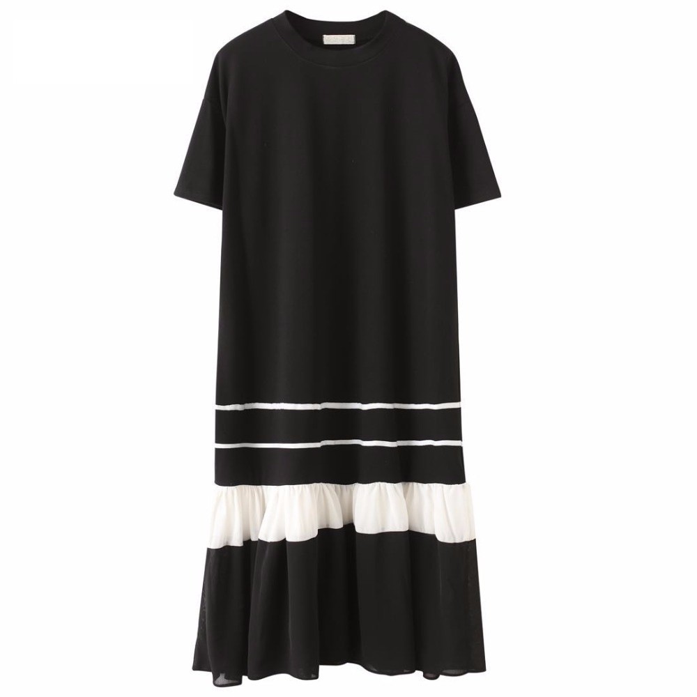 Originálne dámske šaty pod kolená s volánovou sukňou.