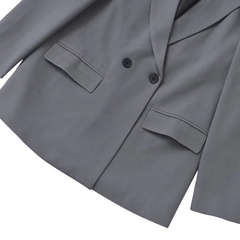Štýlové jednobarevné dámske sako s límcom a vreckami ideálne pre kanceláriu, večerné udalosti aj bežné nosenie. Elegantný strih zvýrazní postavu. Celý popis