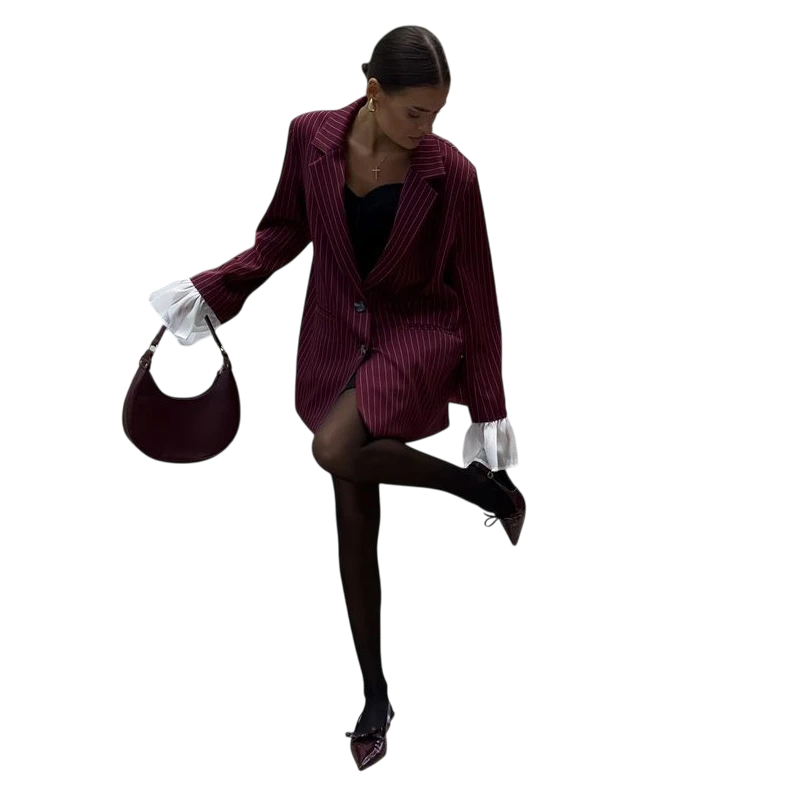 Tento model sa skvele hodí ako do kancelárie, tak aj pre voľnočasové príležitosti alebo spoločenské akcie. Jednofarebné prevedenie s decentnými prúžkami pôsobí elegantne a ľahko sa kombinuje s ďalšími kúskami šatníka. Sako má precízny strih, ktorý zvýrazňuje ženskú siluetu a poskytuje voľnosť pohybu po celý deň.