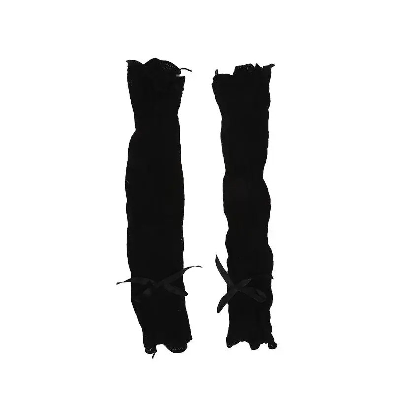 Ľahké krajkové rukavice bez prstov s mašličkami, priedušné a priehľadné. Štýlový doplnok vhodný pre spoločenské aj tematické outfity. Celý popis