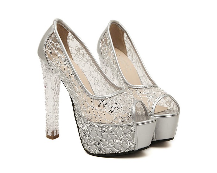 Dámske priehľadné lodičky na platforme J1756