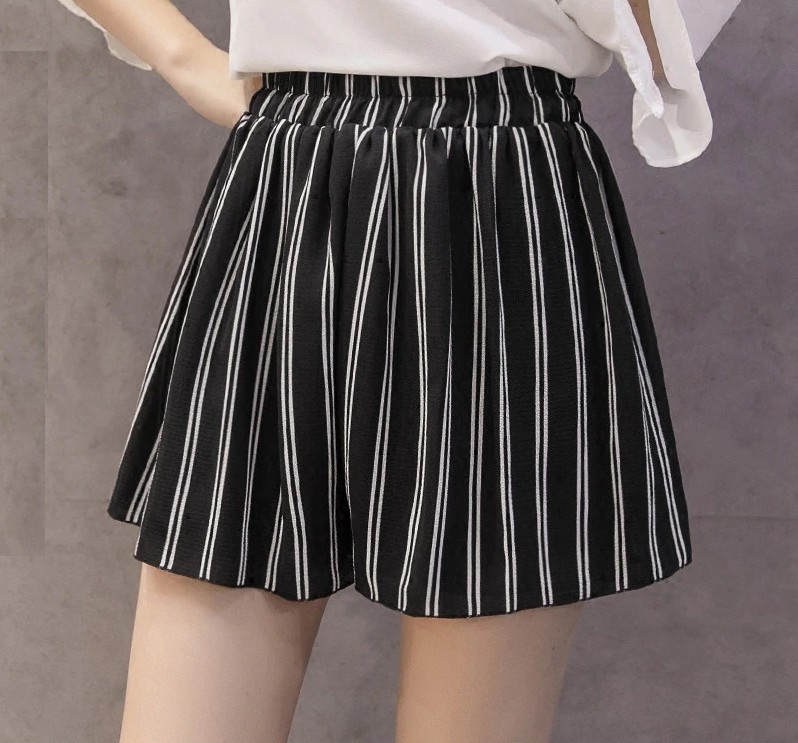 Tieto pruhované kraťasy v štýle sukne si zamilujete.