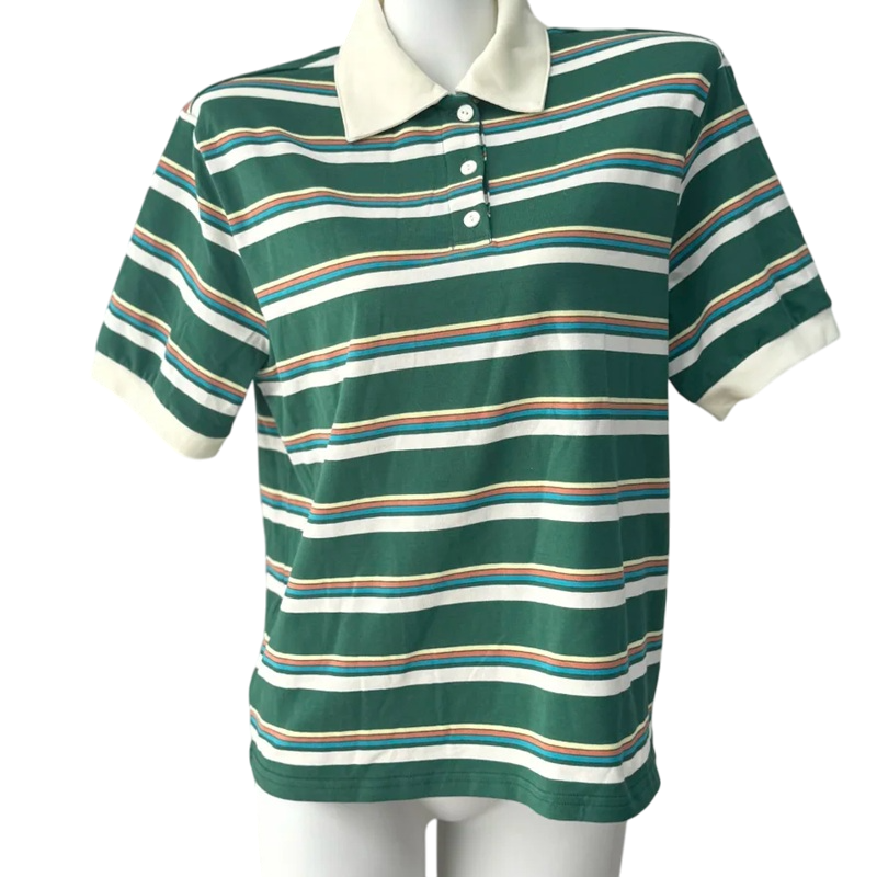 Úvodná strana Úvodná strana Oblečenie a doplnky Dámske Dámske tričká a topy Dámske tričká a topy s krátkym rukávom Dámske pruhované tričko s golierom Elegantné bavlnené polo tričko so zapínaním pri krku Voľnočasové tričko v retro štýle