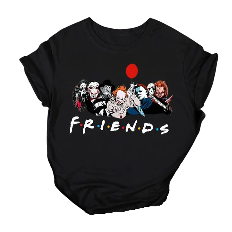 Dámske tričko s hororovým motívom Friends Hororové postavy Filmová potlač Zábavný štýl Krátky rukáv Príjemný materiál Originálny design