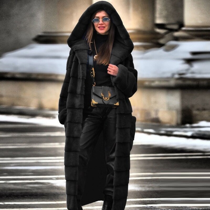 Dámsky dlhý kabát z umelej kožušiny
