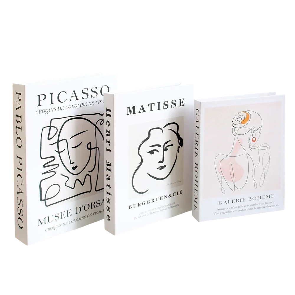 Dekoračné falošné knihy 3 ks Neotvárateľné bytové dekorácie Umelecký dizajn Picasso Matisse Galéria Bohème do interiéru