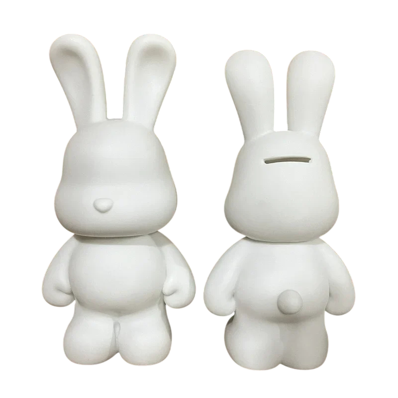 Dekoratívny králik v podobe pokladničky prináša originálne spojenie kreatívneho tvorenia a praktického využitia. Figúrka je vyrobená z živice, ktorá je vhodná na prácu s tekutými farbami a modernými výtvarnými technikami. Vďaka premyslenému tvaru a dostatočnej veľkosti je ideálna na liatie farbou a pouring art, pri ktorom vznikajú jedinečné farebné efekty. Horný otvor umožňuje pohodlné vkladanie mincí, takže hotový výrobok slúži nielen ako dekorácia, ale aj ako funkčná pokladnička. Každý kus sa môže stať osobným dizajnovým doplnkom alebo nápaditým darčekom.