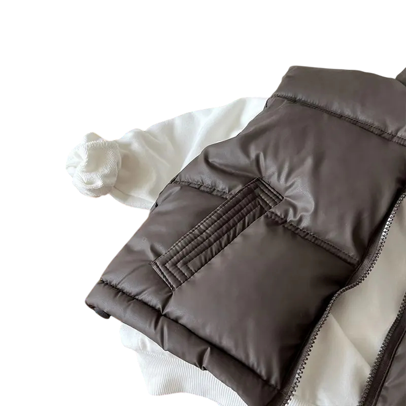 Teplá detská vesta s pérovou výplňou, rolákom a vreckami. Ideálna pre chladné jesenné a zimné dni, vhodná pre chlapcov aj dievčatá od 3 do 12 rokov. Celý popis