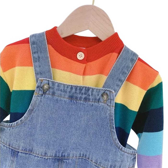 Štýlový detský džínový overal z mäkkej bavlny a pružného spandexu. Pohodlný voľný strih. Ideálny na jesenné dni pre chlapcov aj dievčatá. Celý popis