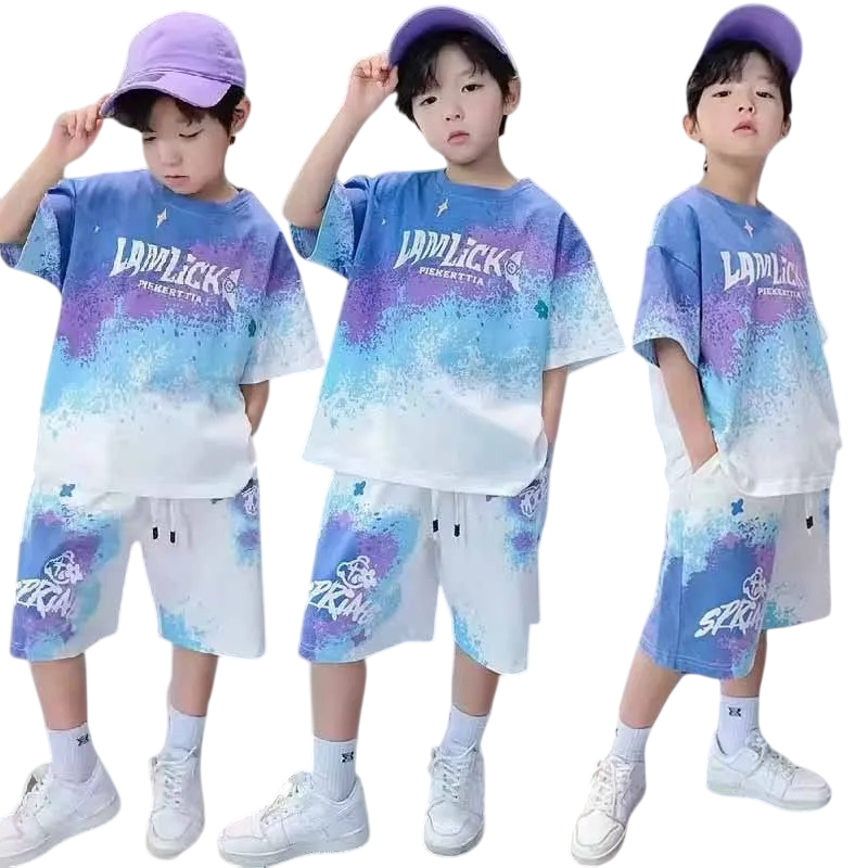Detský letný set farebné tričko s krátkym rukávom a kraťasmi so zaväzovaním na šnúrku Potlač pohodlné oblečenie na leto