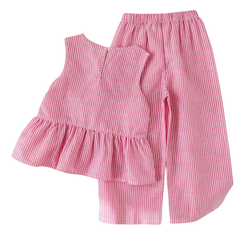 Táto dievčenská ružová pruhovaná súprava je navrhnutá s dôrazom na pohodlie, jemný vzhľad a hravé detaily, ktoré si malé dievčatá rýchlo obľúbia. Pruhovaný vzor pôsobí sviežo a nadčasovo, zatiaľ čo mašličky na hrudníku dodávajú oblečeniu roztomilý a dievčenský charakter. Súprava je vhodná na teplejšie dni a každodenné nosenie doma i vonku. Strih je prispôsobený detskému pohybu, takže neobmedzuje pri hre ani odpočinku. Vďaka jednoduchému prevedeniu sa súprava ľahko kombinuje s ďalšími doplnkami.