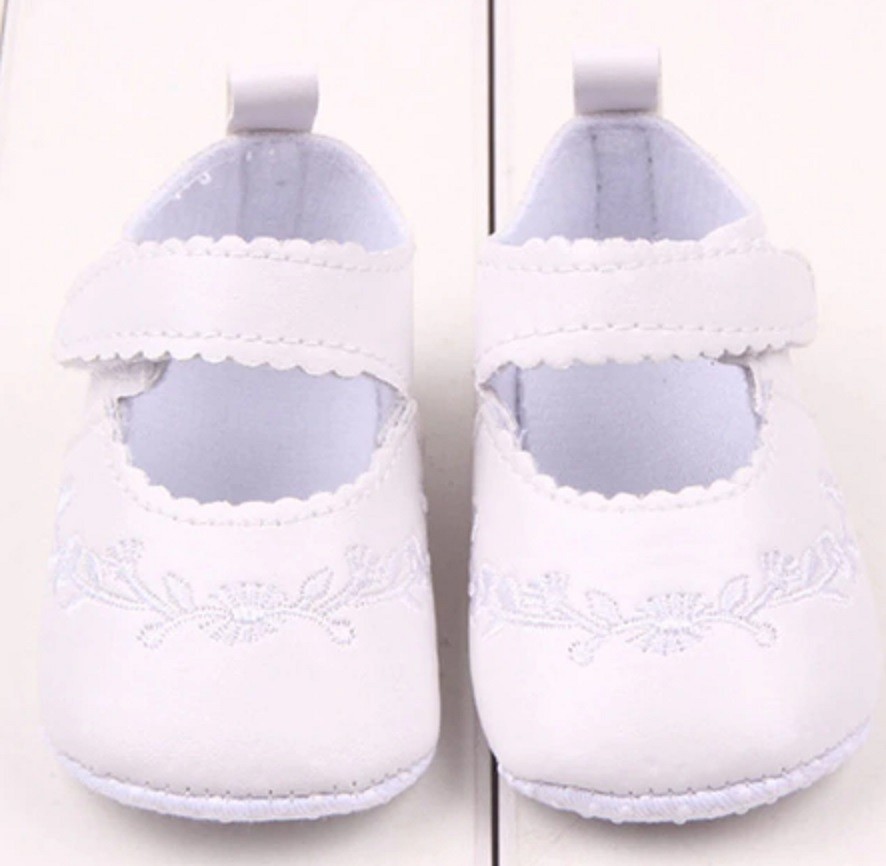 Topánočky sú zdobené kvetmi. Kožené topánočky majú protišmykovú podrážku.