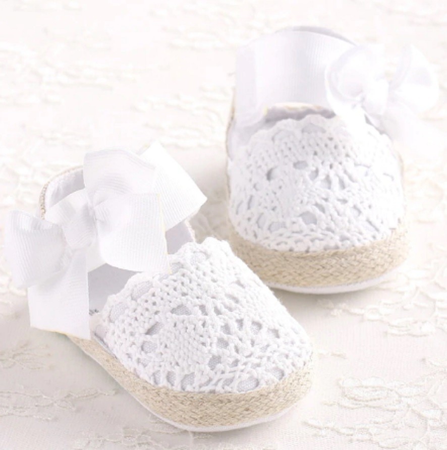 Dievčenské pletené espadrilky sú určené pre tých najmenších parádnice k šatičkám alebo sukienke.