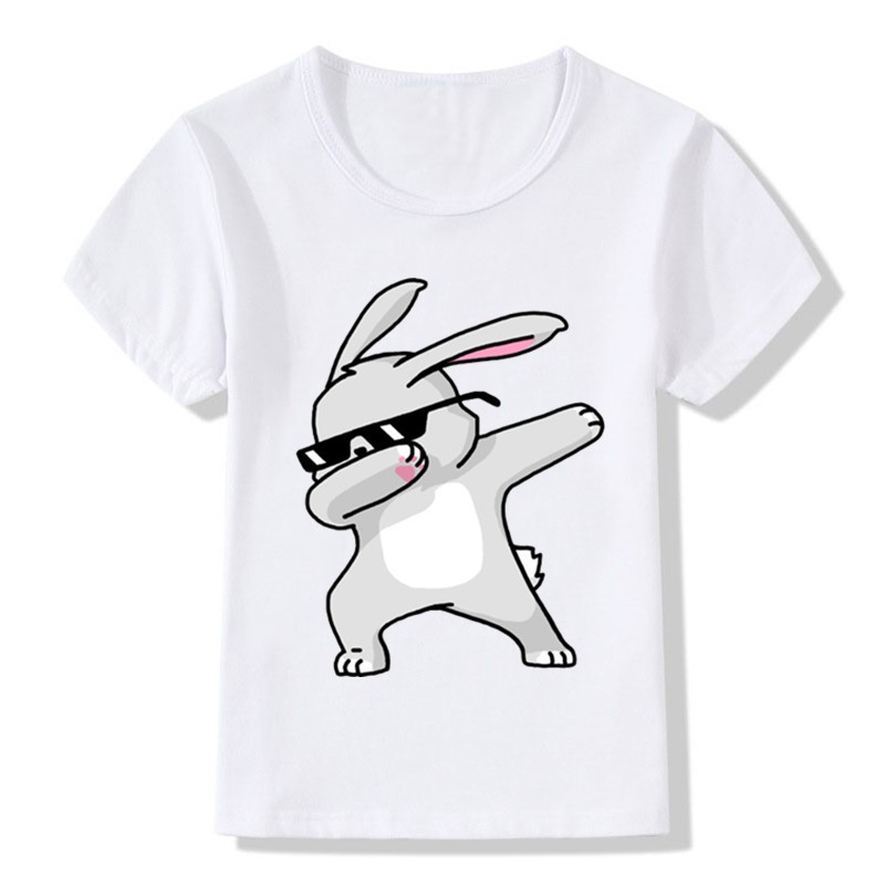 Krásne dievčenské tričko znázorňuje zvieratka robiace dab čiže dabbing.