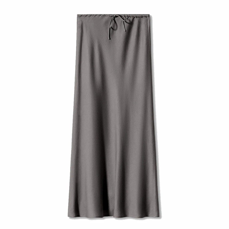 Elegantná dlhá sukňa z lesklého saténu s vysokým pásom a šnurovaním zvýrazní siluetu a dodá luxusný vzhľad každému outfitu. Celý popis