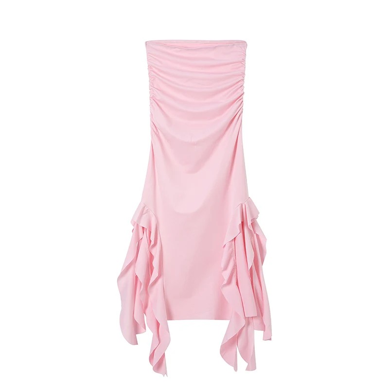 Úvodná strana Úvodná strana Oblečenie a doplnky Dámske Dámske šaty Dámske maxi šaty Dlhé večerné šaty bez ramienok s asymetrickým volánovým lemom a vysokými rázporkami Elegantné priliehavé slávnostné šaty