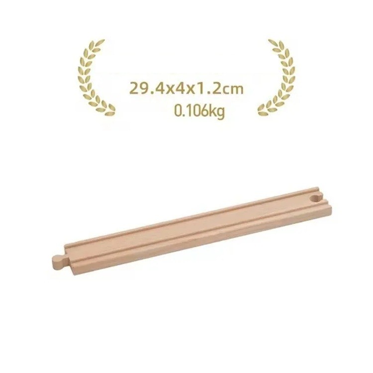 Super dlhá rovná koľaj o rozmeroch 21,7 x 4 x 1,2 cm je ideálnym dielom pre všetkých, ktorí chcú svoju vlakovú dráhu výrazne predĺžiť a získať možnosť tvoriť dlhé priame trasy. Tento prvok poskytuje stabilné vedenie vláčikov a umožňuje stavbu širokých hlavných tratí alebo dlhých spojovacích úsekov medzi jednotlivými časťami zostavy. Vďaka kvalitnému drevenému spracovaniu je koľaj pevná, odolná, má dlhú životnosť a hodí sa na každodenné hranie. Presne tvarované koncovky zabezpečujú kompatibilitu so všetkými bežnými drevenými systémami vlakových dráh.