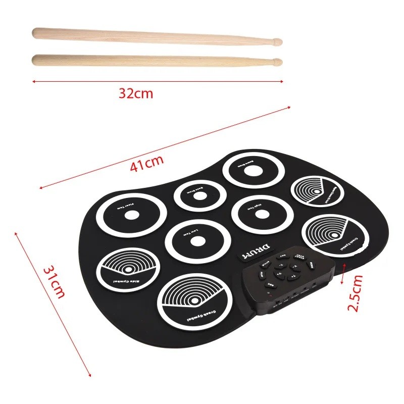 Elektronická bicí sada s 9 padmi je moderný hudobný nástroj, ktorý ponúka skvelý spôsob, ako si užiť hranie na bicie aj v domácom prostredí. Vďaka kompaktným rozmerom 41 × 31 × 2,5 cm je ľahko prenosná a môžete ju používať prakticky kdekoľvek – doma, v štúdiu, na cestách alebo pri skúškach. Táto sada je vybavená MIDI rozhraním, čo umožňuje pripojenie k počítaču či iným zariadeniam a využitie v nahrávacom softvéri aj hudobných hrách.