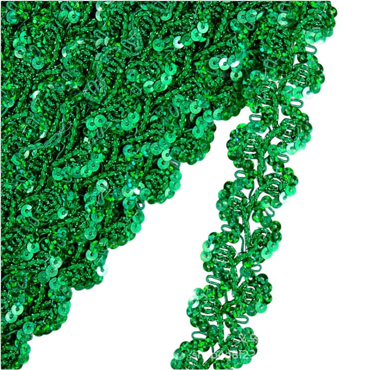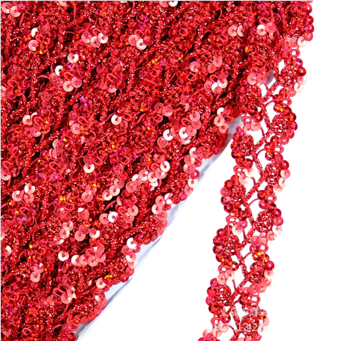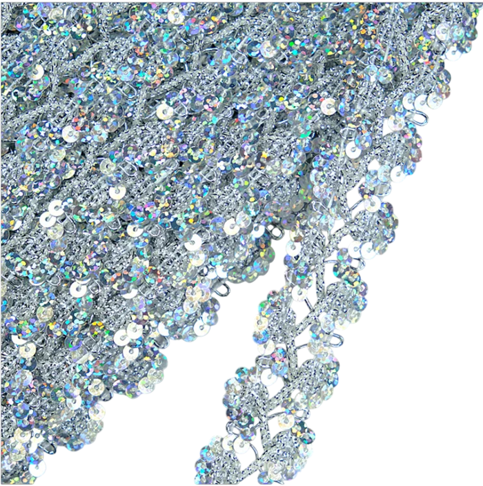 Dekoratívna krajková stuha s flitrami predstavuje jednoduchý spôsob, ako dodať textilným výrobkom výrazný a elegantný detail. Trblietavý efekt flitrov dokáže oživiť jednoduché látky a zvýrazniť dizajn odevov alebo doplnkov.