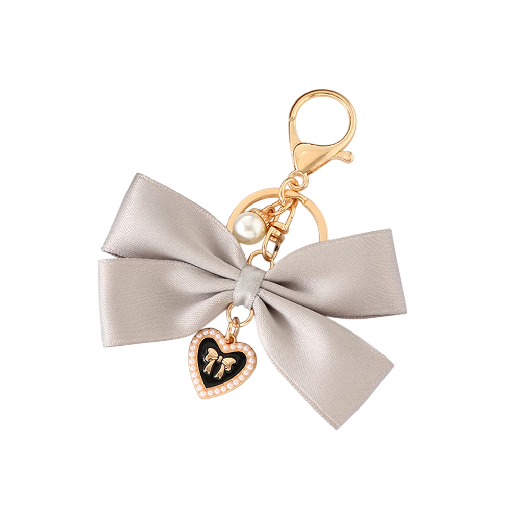 Štýlová kľúčenka s perlovým vzhľadom, stužkou a srdiečkom. Elegantný doplnok na kľúče aj kabelku, ideálny ako milý darček. Celý popis