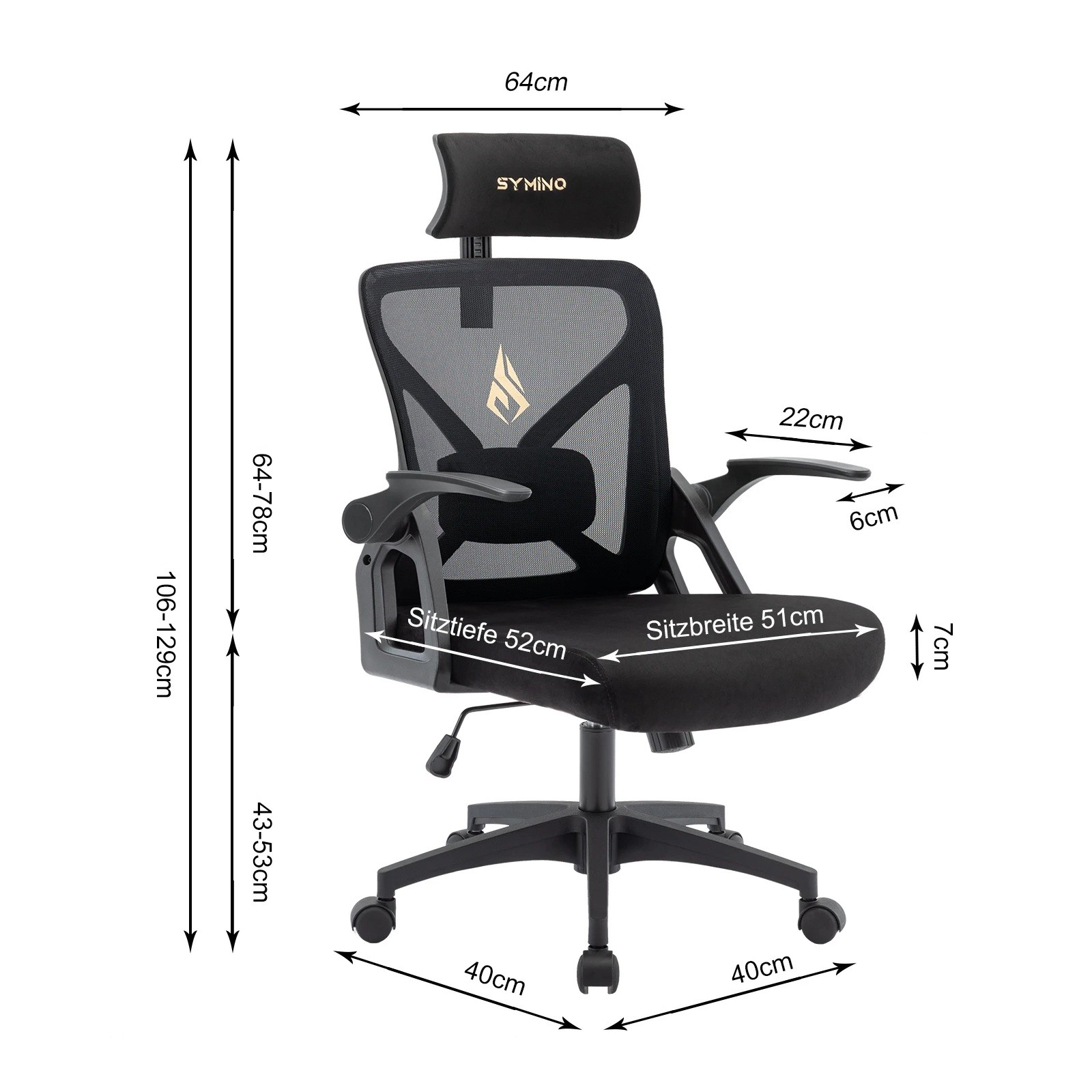 • Celková výška: 106–129 cm, výška sedáku: 43–53 cm